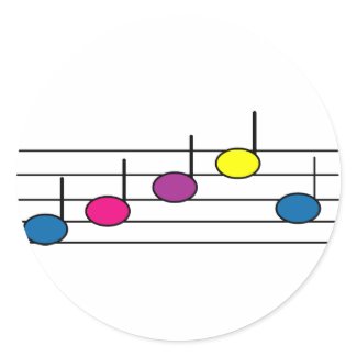Celebrate music with this cute sticker with colorful musical notes. Plenty of room to add your own text!