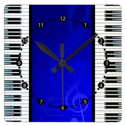 Piano Keys with Blue Effect Musical Notes Square Wallclocks