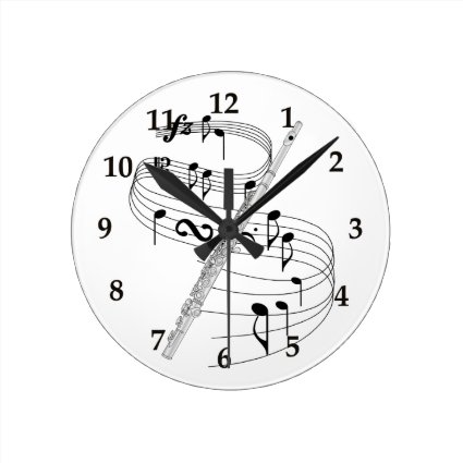 Music makers celebrate! Proudly announce to the world, I Play the Flute! A stylish wall clock featuring an image of a flute with swirling musical notes.